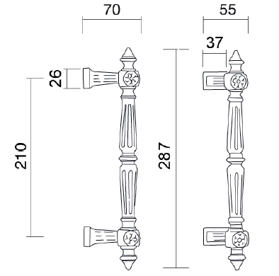 Pull handle Patrizio Pasini is a pull handle in classic style, made in brass by the Italian company PFS Pasini, Classique Line collection.