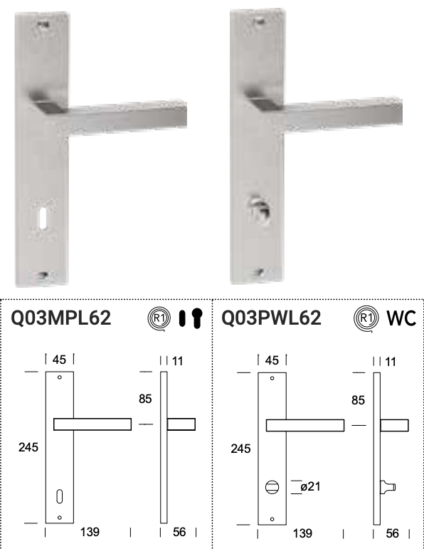 Reguitti Genève Q03 / 9QM - Door Handle on Plate Stainless Steel