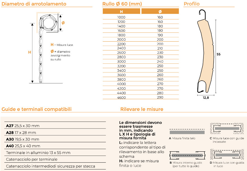 To choose the profile of the shutter (in case of replacement) measure the height of the single slat without considering the connecting hook between the slats.