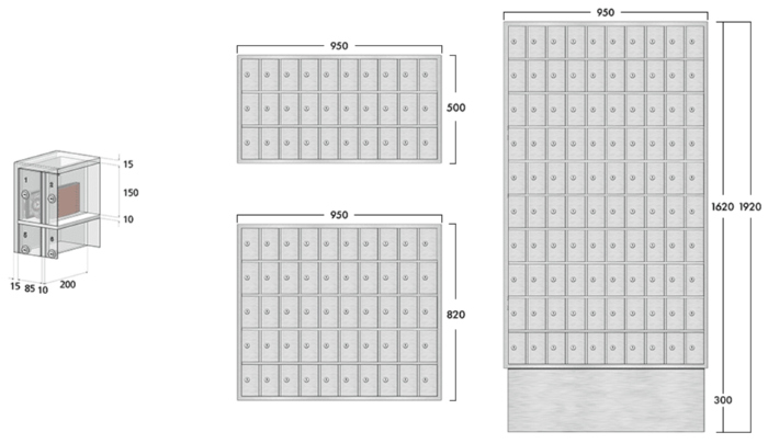 lockers for gyms and the possibility of making them in any number and configuration of the boxes facilitates their placement even in particularly sacrificed areas. In this way the safety problem can be solved with pleasant aesthetic solutions.