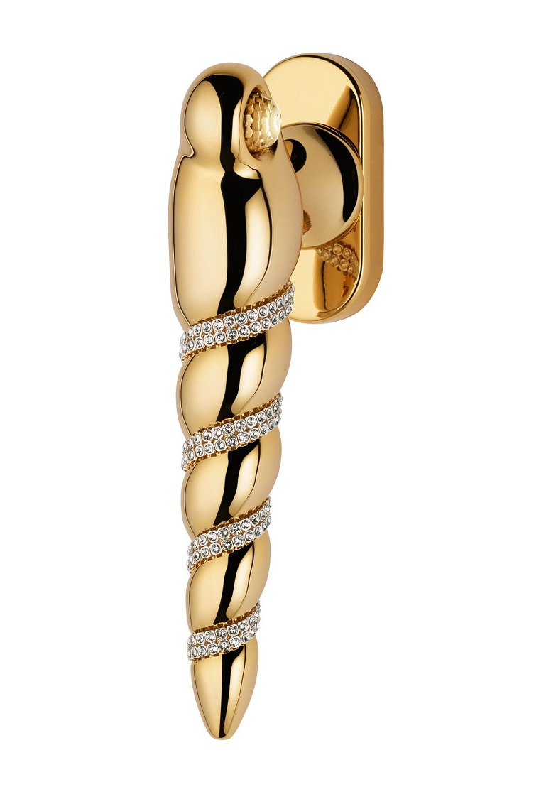The door knob, on the other hand, has the form of another rare shell: the “Lurifax Vitreus”, discovered recently by Warén & Boucet in the central Tyrrhenian sea. The new door knob is characterised by a jutting tip with a precious Swarovski® crystal, that “illuminates” the forms and makes it even more precious.