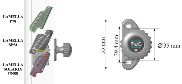 shutter knob can be mounted on all Tecnometalsystem adjustable shutter mechanisms, it is assembled with the