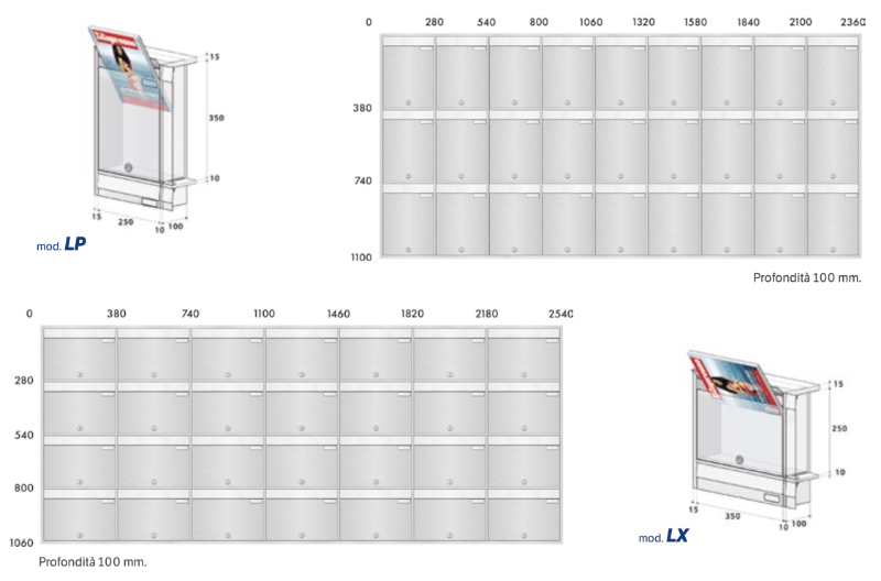 - Advertising boxes : useful for containing advertising and preventing it from being dispersed in the entrance;