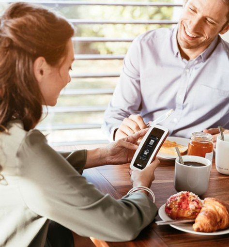 An eco mode is automatically activated if Nina is not placed on its base: it decreases the backlight to reach, as an indication, 10 days of use (with 12 actions per day and an installation of 15 equipment);