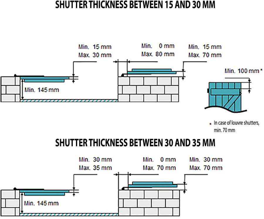 It is installed under the lintel (a minimum depth of 145 mm is required between the closed shutter and the window).