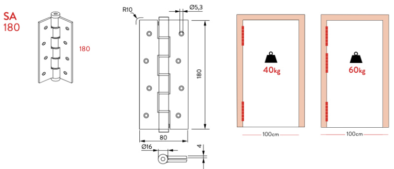 Single Action Spring Hinge - Justor SA 180 - Height 180 mm - 2 Pieces