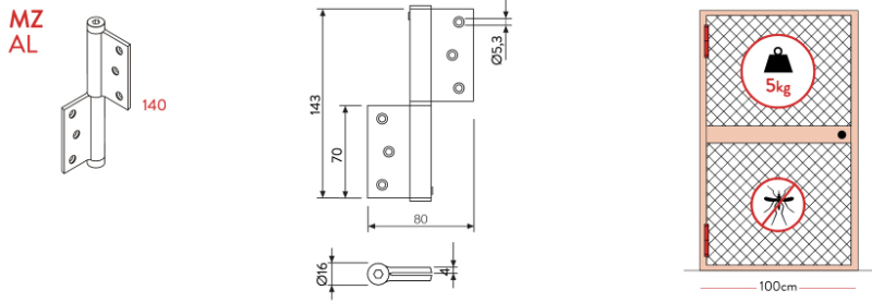 The pin for insect screen doors allows automatic closing of this type of auxiliary door, preventing the passage of any insect.