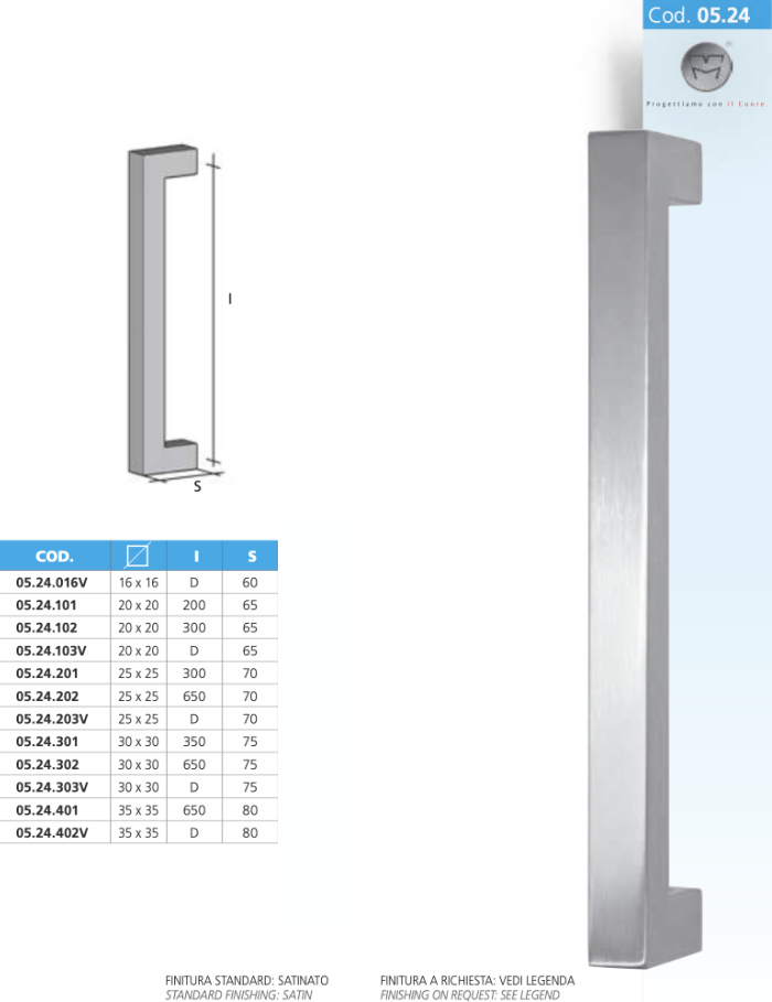 Pull handle in brushed, polished or painted AISI 316L quality steel. AISI 316L stainless steel is very resistant to atmospheric agents and saline fog in areas near the sea.