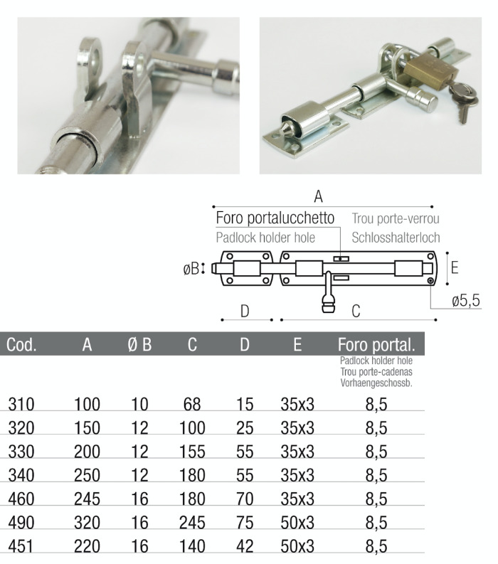 The Adem deadbolt is the ideal solution for doors, gates, gates, windows, wells, gardens, animal fences, mobile covers and specific applications in various sectors and types of industrial products.