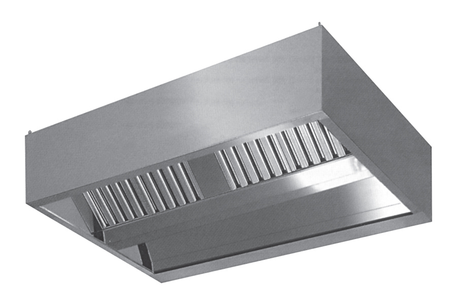 cubic island hoods in stainless steel , parallelepiped-shaped hoods, made of resistant AISI 430 stainless steel, assembled by spot welding, complete with electric fan and