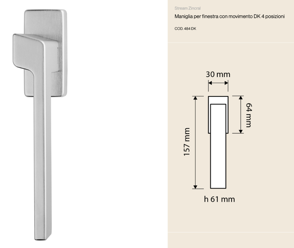 The profile, composed of oblique lines that connect to extremely rigorous lines, characterizes this DK window handle with a decisive and elegant style.