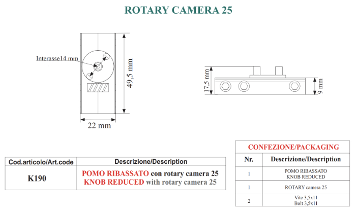 - K190 : LOWERED POMO handle with rotary camera 25;