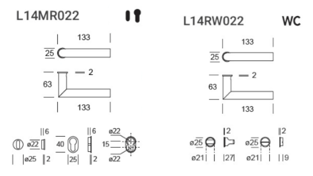 key hole is at your choice: customize your Reguitti door handle as you wish by selecting the variants.