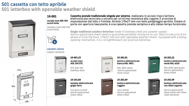 The Silmec S01 mailbox available in satin stainless steel or decorated in linen cloth, in electro-galvanized painted sheet (excellent resistance to rust) and rustic.