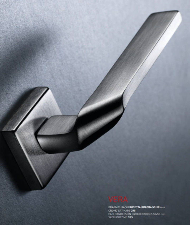 high-quality materials and with particular attention to finishes, the Vera handle stands out for its modern lines and square rosette that gives a touch of contemporaneity to the rooms.