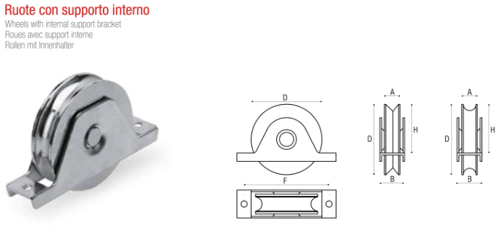 Wheel with internal support for sliding gate, produced in various diameters by the company Brevetti Adem.