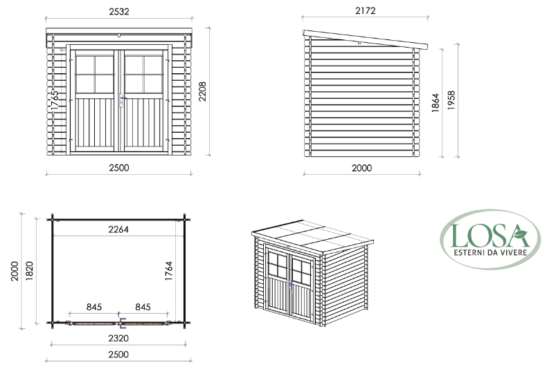 Nina Losa garden tool shed - Measurements
